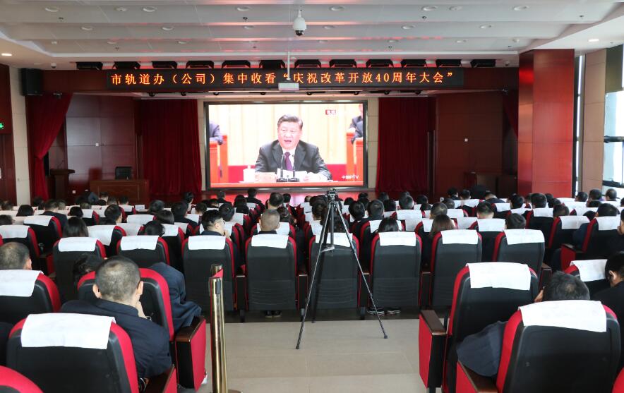 12月18日上午10:00,庆祝改革开放40周年大会在人民大会堂举行,轨道办(公司)党委组织干部员工第一时间收听收看直播盛况。为收看好本次盛会,转达好会议精神,市轨道办(公司)设置了轨道公司、运营分公司两个分会场观看直播过程中,大家精神饱满,聚精会神,认真聆听习近平总书记的重要讲话,向为祖国作出突出贡献的改革先锋表示敬意,共同感受祖国改革开放40周年的日新月异。