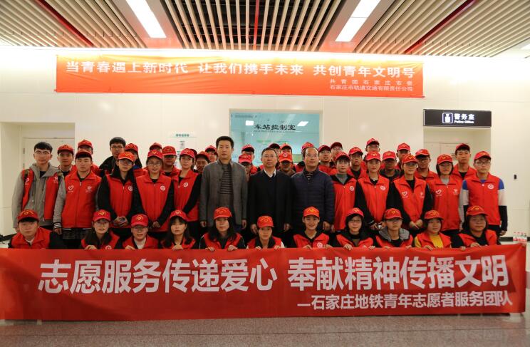 为巩固提升全国文明城市创建成果,认真落实省、市“双创双服”活动要求,扎实推进“双问计”活动常态化、长效化,按照“提升服务品质,创建满意窗口”总体工作部署,进一步促进志愿服务事业持续发展,充分发挥志愿者在精神文明建设中的生力军和突击队作用,在共青团石家庄市委的大力支持和有力指导下,石家庄轨道公司携手河北经贸大学、石家庄学院两座高校,成立石家庄地铁首批青年志愿者服务队伍,并于11月9日开展首次志愿者服务活动。