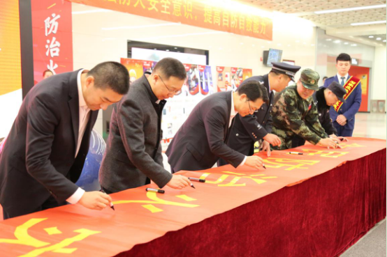 启动仪式上,首先由运营分公司经理助理王龙同志做消防宣传月活动的动员讲话,同时也对轨道交通消防安全管理工作进行了简要介绍。随后,由运营分公司总工程师汪伟宣布消防月活动正式启动并与各位领导率先在主题条幅上签字。