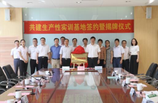 付庆文董事长与刘明生书记代表双方签订了共建生产性实训基地框架性协议,并为生产性实训基地揭牌。