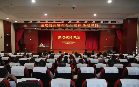 为增强广大干部职工的廉洁意识,提升员工的招投标业务水平,进一步规范公司招投标工作,8月23日在轨道公司2307会议室举行了廉政教育暨招投标法律法规培训。轨道公司领导班子成员、公司及各子(分)公司中层正副职、合同管理相关人员、公司工程一部、工程三部、设备部、总工办、合同部全体人员及各相关参建单位主要领导、相关负责人约200余人参加了培训。