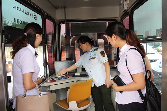 首先,石家庄站安站长带领参观收费站的标准化作业,介绍操作流程及规范,建立“春雨服务爱心驿站”,延伸亲情服务等举措。