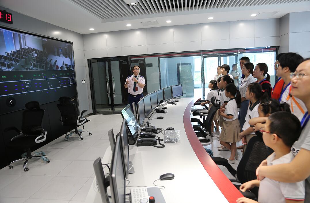 活动第二站小学生和家长们被邀请来到地铁培训中心--OCC控制中心,参观地铁“中枢大脑”。在OCC控制中心屏幕上分别显示石家庄地铁各车站的客流信息,及列车运行实时监控情况。“这里就是石家庄地铁的‘中枢大脑’,对地铁全线所有运行列车、区间线路、车站进行监控管理和调度指挥,保证地铁安全平稳运营……”工作人员认真的向小学生们作以讲解。现场无论小学生还是家长,顿时化身“好奇宝宝”,左看看右拍拍,还要不时向工作人员提出问题。当大家了解到地铁线网高效运转的背后,是运营“中枢”
