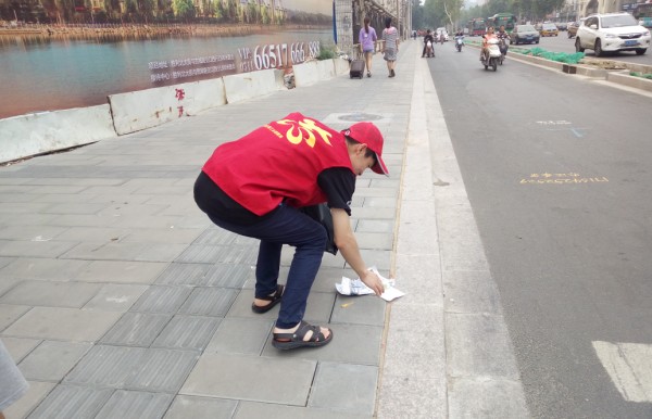 这次活动的主要内容:一是对路面烟头、纸屑等废弃物进行清理,对市民随地吐痰、乱扔废弃物等不文明行为进行劝改;二是将沿街随意停放的共享单车重新整理摆放,营造繁华街区整洁、有序的环境;三是在中山路与东二环的交叉路口进行文明交通劝导服务,引导市民文明出行。所有的志愿者们都在用行动宣示着“建设文明石家庄,做文明石家庄人”。