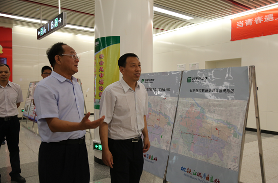 6月19日,省安监局副局长武志新、市安监局局长暴胜贤等一行十余人到石家庄地铁1号线北国商城站检查指导安全生产公益宣传情况。市轨道公司董事长付庆文、市轨道办总工杨立众、市轨道公司副总经理运营分公司经理付朝立等进行陪同。省安监局领导一行在查看了地铁出入口、通道、站厅层等的宣传情况,详细了解了市轨道公司围绕“生命至上、安全发展”主题开展的系列安全生产月宣传活动,并对市轨道公司积极广泛开展安全生产公益宣传工作表示肯定。