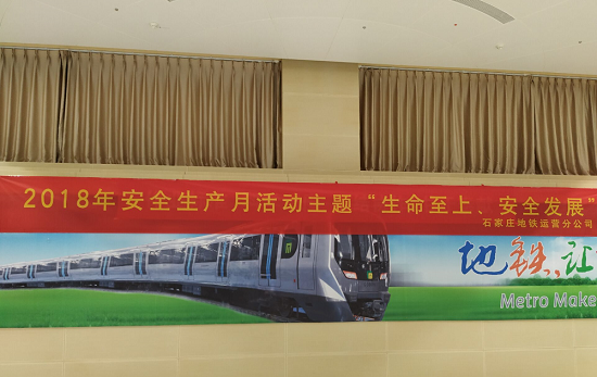 根据运营分公司安全生产月宣传活动方案,通过在车辆段、车站、OCC悬挂和张贴“生命至上、安全发展”、“安全责任重于泰山,人民利益高于一切”等通俗易懂、简洁精炼的安全宣传条幅和标语,在理智上启发、情感上打动员工和乘客,提高全体员工和乘客对安全的认识,营造浓厚的“安全生产月”宣传氛围,促使员工确立牢固的安全意识。