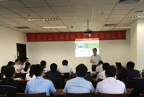 在喜迎我市地铁首期工程2条线路开通试运营周年之际的6月21日,调度部14时30分在其418培训室举办“我心中的安全”主题安全演讲比赛。7名行调、4名电调、3名环调、1名维调和1名工程师共16位同事,按规定条件报名,按抽签顺序上场,按比赛规则演讲。运营分公司总工程师汪伟和安全管理部、企业管理部、物资部、票务部等兄弟部门一起,共54人到场观赛。