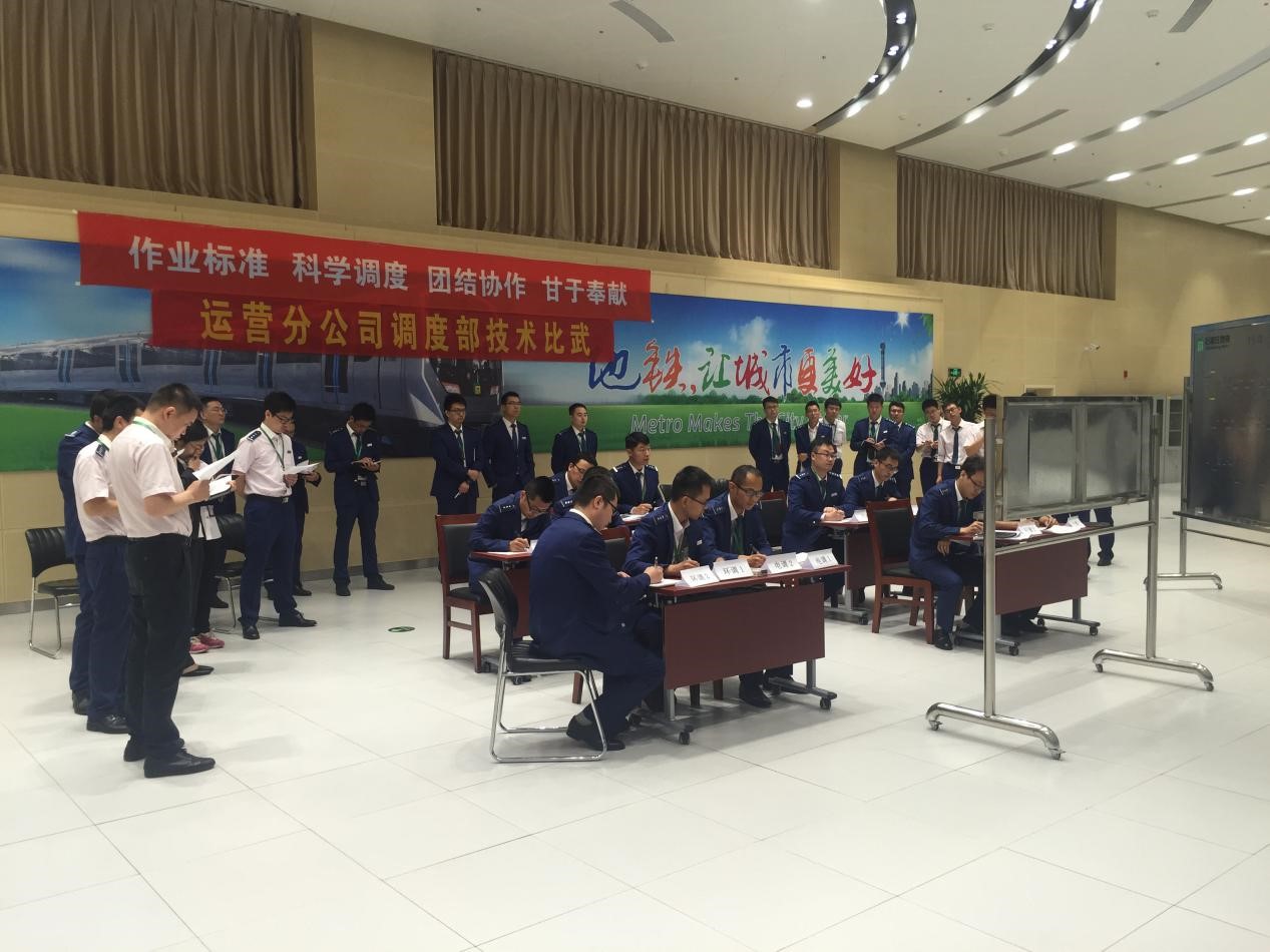 5月15日,根据班组值班实际情况,分别安排在调度部培训室与OCC大厅同时组织理论考试。考试采取闭卷形式,按照调度岗位分为值班主任、行调、电调、环调、维调5类试卷,每类试卷分为A、B卷,考试现场由工作小组组长抽选A、B卷。考试前部门负责人进行考前动员,强调了技术比武的目的和重要意义,并预祝大家取得优异成绩,同时部门邀请了技术管理部副主任张世民、人力资源部主任工程师李一松进行现场指导和监督。