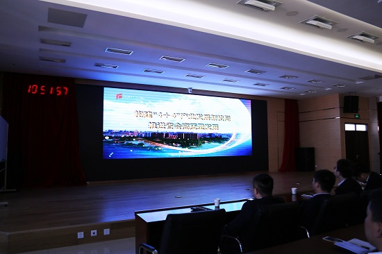 2018年2月22日上午,运营分公司组织党员干部职工在培训中心第一报告厅集中收看“石家庄市加快‘4+4’产业发展动员会”电视会议。运营分公司经理助理谢志锋、李战彬、王龙等领导参加观看电视会议实况。