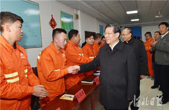 2月15日,河北省委书记、省人大常委会主任王东峰,省委副书记、省长许勤来到石家庄市地铁3号线一期工程施工现场,亲切慰问干部职工。这是王东峰、许勤走进职工中间,与大家握手交流,并向大家致以新春祝福。