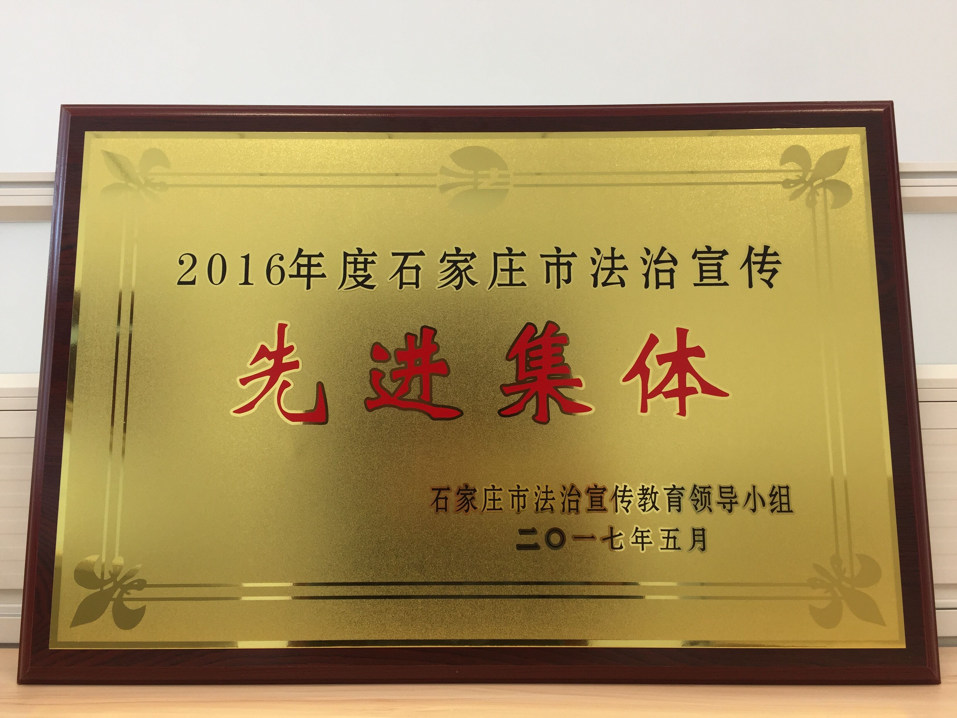 石家庄市轨道交通建设办公室荣获2016年度石家庄市普法宣传先进集体。