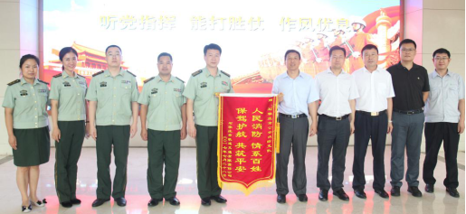 在“八·一”来临之际,公司党委书记、董事长付庆文带队,与付朝立、王云贵等公司领导一行来到石家庄公安消防支队指挥中心,将一面印有“人民消防,情系百姓,保驾护航,共筑平安”的锦旗送到了消防支队,对支队全体消防官兵致以节日问候,并对支队在石家庄市轨道交通事业上的帮助和支持表示感谢。