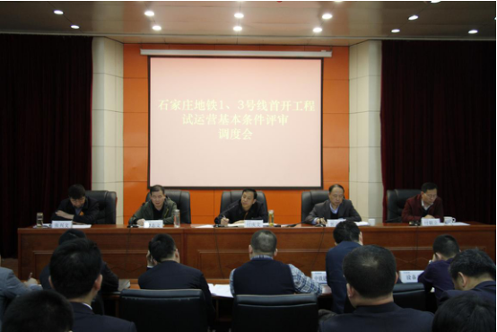为全力推进石家庄市轨道交通1号线一期和3号线一期首开工程试运营基本条件评审工作,石家庄市轨道交通有限责任公司于 2017年3月17日,组织工程建设、运营与资源开发等相关单位,召开试运营条件评审调度会。此次会议由郭京晶副主任主持,参加会议主要领导为轨道公司董事长付庆文,轨道办副主任郭京晶,轨道公司副总经理谭志文,轨道公司副总经理、运营分公司经理付朝立,轨道公司副总经理张兴文。轨道公司、运营分公司及施工单位、监理单位等相关工作人员参加。