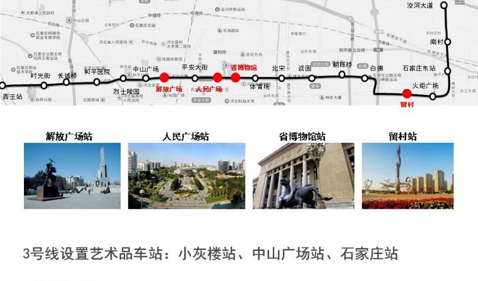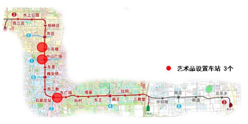 石家庄地铁一期工程,含1号线一期工程和3号线首开段工程,共25个车站;其中设置艺术墙的站点共7个: