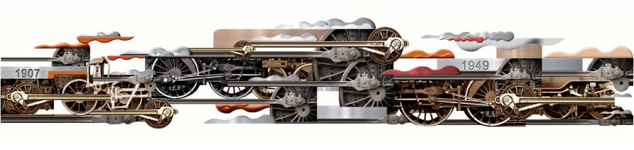 作品主景选取蒸汽机车、内燃机车和高铁列车三种不同时代的造型,以及从1907年开始到现在的三个火车站:正太铁路火车站、1987年代建成的老火车站、2012年投用的石家庄新火车站,从左到右、从低到高依次展开;背景建筑选取石家庄具有历史意义的大石桥、解放胜利纪念碑,当前地标性建筑:省科技大厦、省艺术中心、石家庄广电中心、开滦大饭店(原金谷大厦)、世贸广场酒店、冀之光塔、联通长途枢纽、美丽华大酒店(原华药大厦)、电视塔等。以三种火车的造型与石家庄过去、现在的建筑形象互相穿插、交错、叠合,象征了火车与石家庄这座城市的紧密关系,并赋予画面重构并置的现代审美特征。