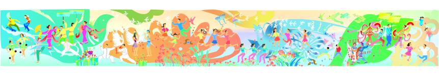 题材内容:作品借鉴辛集农民画的创作手法,描绘了石家庄作为一个宜居的幸福家园,花鸟荟萃,绿树成荫,人们在绿色海洋中跳舞、打太极拳、打球、滑板、舞剑、放风筝、吹笛子、散步等,人物活动形成的动感画面象一曲蜿蜒流淌的乐谱,映衬在花鸟绿叶背景上。整体色调轻松明快,营造人与自然和谐共处的恬静气氛,也与该站的人民广场上的人群活动遥相呼应。