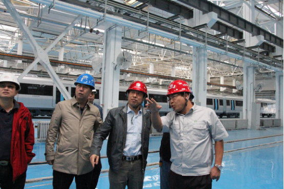10月9日,石家庄市轨道交通有限责任公司董事长付庆文与轨道办副主任、党委副书记郭京晶等相关领导一行来到西兆通车辆段,检察车辆段运用库、联合检修库、污水处理厂的运行情况,并详细听取了运营分公司关于行车组织与客运组织的专题汇报。按照市级领导对石家庄轨道交通试运行工作的重要指示,并结合轨道交通建设与运营筹备工作进度,董事长付庆文对分公司试运行筹备工作提出以下要求: