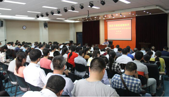 赵新朝以党中央“四个全面”战略布局作为讲话的宏观着眼点,深刻剖析了法律和道德的辩证关系,并放眼社会意识形态的范畴,强调指出德治是与法治相辅相成、不可或缺的治理良策,从“道德观念对人类社会的作用”、“道德观念的特性”、“道德观念的外因约束”、“领导干部必备的道德素质”等四个方面对提升领导干部的道德修养提出了具体要求。