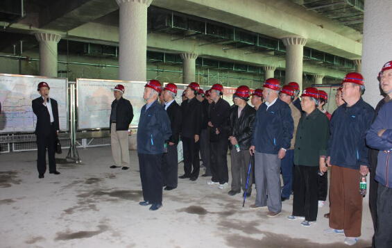 观摩团在中山广场站负一层听取了市轨道公司总经理韩春素关于石家庄地铁总体规划的介绍和中铁建投资公司常务副指挥长贾建平关于中山广场站建设情况的汇报。在轨道公司的带领下,观摩团先后参观了中山广场站负一层、负二层、负三层的施工现场。在参观过程中,能不时听到老干部们的赞叹之声。其中,观摩团一位最高龄87岁的人大代表赞叹到:“这是多么宏伟的工程!”而另一位同龄老人家同时也感叹地说:“没想到还能坐到石家庄人民自己的地铁!”