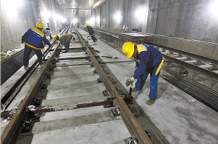 据杨立国介绍,地铁3号线首开段自小灰楼站至石家庄站,全线需铺轨15.25公里,全线设两个铺轨基地,即小灰楼站和东里站,其中小灰楼站——东里站之间的轨道主要靠人工铺设;东里站——石家庄站之间的轨道主要靠机器铺设。按照计划,地铁3号线首开段将于2016年3月底实现“短轨通”,2016年4月底实现“长轨通”。