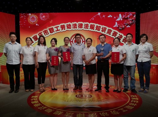 继7月2日石家庄市职工劳动法律法规知识竞赛(初赛)在市公交总公司举行,决出全市、县8支代表队、24名选手挺进决赛后,8月11日下午,石家庄市职工劳动法律法规知识竞赛(决赛)在石家庄市电视台拉开帷幕。经过必答环节、抢答环节、风险环节、案例分析环节数轮激烈角逐决出了一、二、三等奖,我公司代表队取得了三等奖的优异成绩。