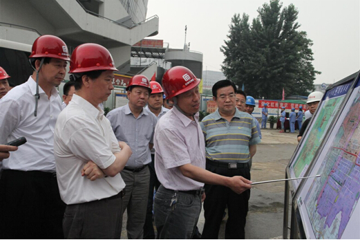 6月6日上午,杨汭副省长一行冒雨来到石家庄市轨道交通1号线体育场站,调研地铁建设进展情况以及轨道交通与我市其它交通枢纽的接驳情况。石家庄市市长王亮、省政府副秘书长苏蕴山以及省、市直相关单位负责同志参加了调研。市轨道办党委书记张发旺在施工现场对杨汭一行的到来表示了热烈欢迎,市轨道公司董事长付庆文就全市轨道交通项目建设作了简要汇报。