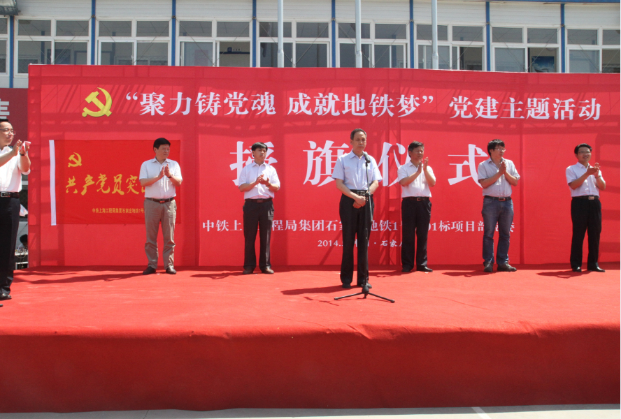 石家庄地铁1号线一期工程具有建设模式新、前期工程难、接口任务重、参建队伍多、建设周期长等特点和难点。为了促使各级党组织适应新形势,开创新局面,促进广大党员把政治热情、工作积极性导向生产、经营、管理的主战场,中铁北方投资公司党工委去年10月份在全线开展了“聚力铸党魂 成就地铁梦——建设平安地铁 为党旗增光辉”主题实践活动”,形成“班子起带头,党员当先锋,员工紧跟上”的竞赛局面。这次“聚力铸党魂,成就地铁梦”党建主题活动授旗仪式的举行,既是学习贯彻落实十八届三中全会精神的一次具体实践,也是推动石家庄地铁1号线建设的一项重要举措。