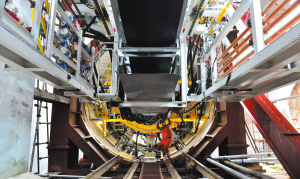 盾构机主体部分是整个装备的核心所在,需要工程技术人员对每一个部件进行精密安装调试。