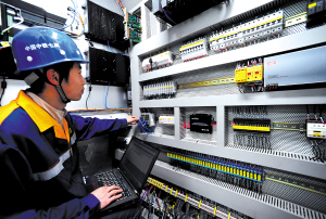 年轻的工程技术员正在一丝不苟地检查每一个零部件。