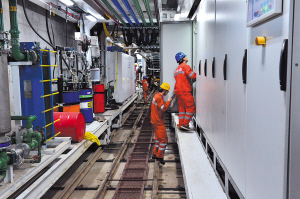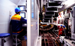 盾构机操作室位于整个机组的前部,进行实时的数据监控。