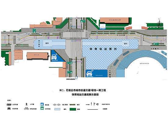 为了缓解我市交通压力,还路于民,于2014年3月28日晚,我市轨道交通1号线一期工程体育场站恢复体育大街与中山路交叉口处26米南北向交通,其中由南向北恢复四条机动车道及一条人、非混行车道,由北向南暂时恢复两个机动车道,具体见附图一。同时,实施体育场站东部基坑围挡西扩至盖板处,待管线回迁完毕后再实施西部基坑围挡东扩。