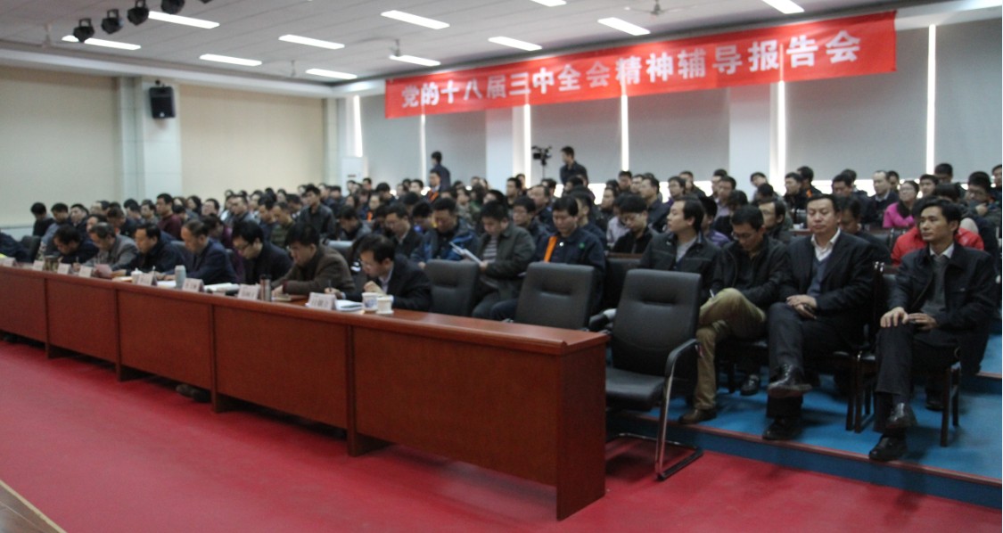 报告会详细解读了党的十八届三中全会精神,并指出党的十八届三中全会是在我国改革开放新的重要关头召开的一次重要会议,是对全面深化改革的又一次总部署、总动员,是我们党在新的历史起点上全面深化改革的科学指南和行动纲领。学习宣传和贯彻落实党的十八届三中全会精神,是当前和今后一个时期的首要任务。