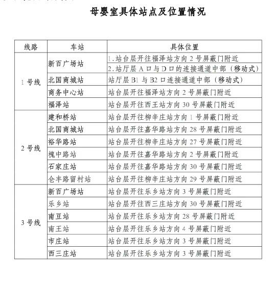 在地铁站开展母婴室建设是石家庄地铁继“站内购物免费乘车”“2元畅享地铁”“便民如厕”等系列便民服务活动之后,新增的又一项便民服务。注重便民细节,提升幸福质感,石家庄地铁积极为现代化国际化美丽省会城市建设增砖添瓦。