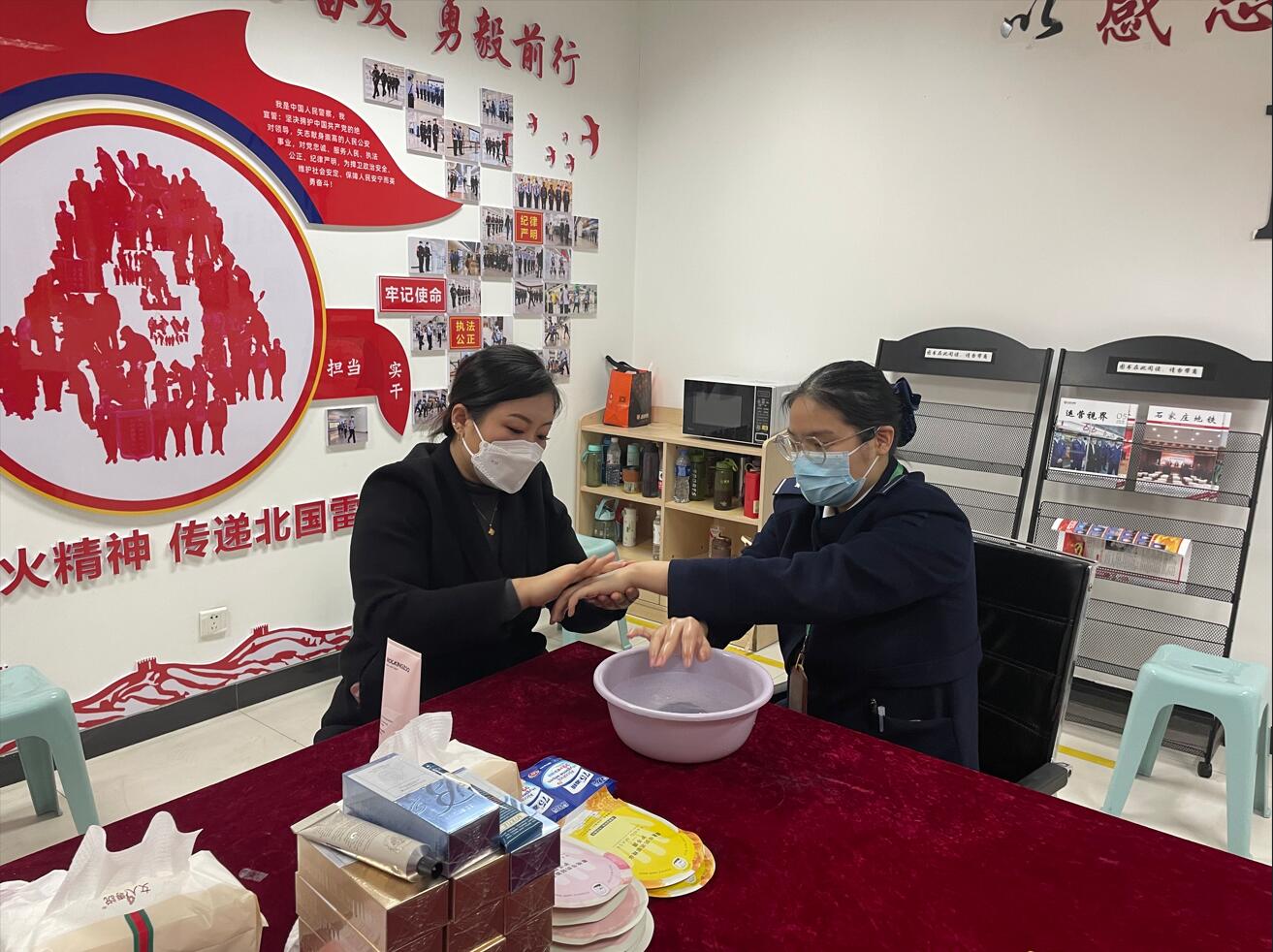3月7日上午,由工会女职工委员会成员组成的服务小分队,分别前往石家庄站、北国商城站、新百广场站为一线女职工进行手部护理服务。在护理过程中,工会成员与一线女职工聊工作、唠家常、分享生活趣事。进一步拉近了集团工作与职工间的距离,加深了对一线职工工作内容的了解,也体会到了作为窗口单位在服务乘客、服务城市中的付出与奉献。在“三八”妇女节到来之际,通过此次活动,为大家舒缓工作中的紧张忙碌,进而能以更好的状态投入到客运服务中。