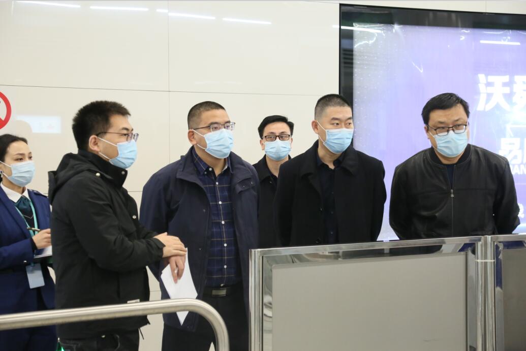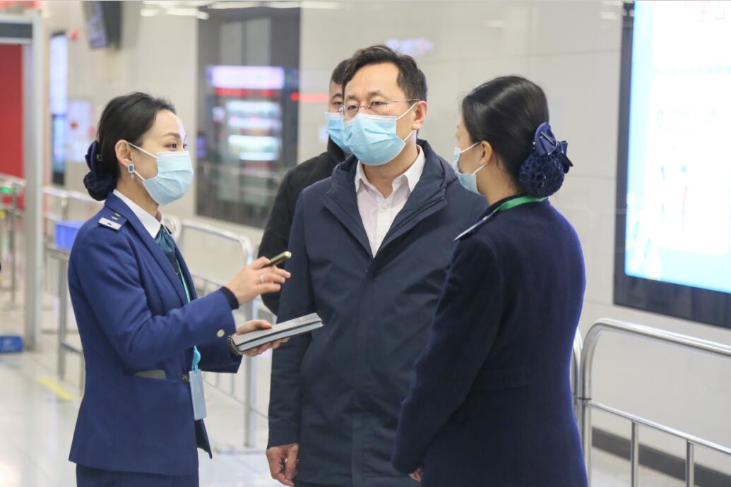 2022年3月13日,轨道集团董事长周伟、总经理付朝立带队,分别到石家庄地铁1号线谈固站,2号线长安公园站、槐中路站等地检查车站疫情防控工作落实情况,并查看槐中路站B出入口在建工程进展情况。运营分公司经理王龙、副经理杨俊义、总工程师李建加陪同检查。