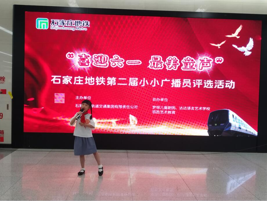 为贯彻落实“三重四创五优化”工作部署,持续开展“双问计”活动,更好地践行“地铁,让城市更美好”的理念,2021年5月23日下午,由石家庄市轨道交通集团有限责任公司主办,梦想儿童剧团、达达语言艺术学校、百盛艺术教育承办的“喜迎六一 最美童声”石家庄地铁第二届小小广播员评选活动在北国商城站隆重举行。