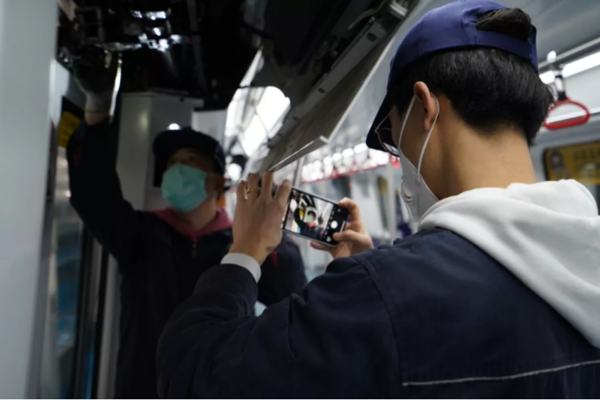 在工作之余,为了配合部门疫情防控宣传工作,1号线定修工班杨旭、设备维修工班杜天航利用休息时间,用自己手中的镜头和笔,认真记录着身边坚守岗位的一线员工,为一线员工带来动力,也为乘客安全乘坐地铁送去安心,让大家看到车辆人抗击疫情的决心,坚定战胜疫情的信心。而在这一次次默默奉献的背后他们总是说“把车辆人坚守岗位的实景实况呈现在大家面前,为鼓舞士气、传播正能量出一份力,是我们应该做的。”