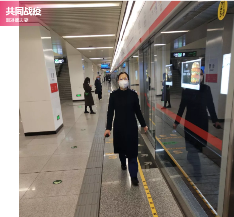 “老公,今天怎么样,快下班了吗?”“嗯,这会人正多呢,一会忙完接班的来了就回家”“好的,我已经到车站了,接班去了,一会回家记得洗手洗脸再抱孩子”“知道了,带好口罩,照顾好自己,爱你。”2月3日晚8时,石家庄地铁谈固站值班站长寇琳娜放下电话,深吸了口气,继续投身到工作中。自疫情防控“战疫”打响以来,作为党员的寇琳娜,主动申请放弃本计划好的年休假,积极投身到地铁疫情防控工作当中去。她要每2小时巡视一次车站,监督进站的乘客是否全程佩戴口罩,检查安检是否逢人必测,检查保洁是否对重点部位进行消毒,还要保证在疫情防控期间,所有岗位在做好自我保护的同时保持标准化作业。她说:“我不是一名合格的母亲,也不是一名合格的女儿,但是我要做一名合格的党员,更要做一名合格的地铁人。在各种交通工具被宣布停运的情况下,地铁人一直在坚守!”寇琳娜的爱人是谈固社区治保会委员,同样奔赴在疫情一线。近一周来,他每天工作十几个小时,为保护更多人的安全筑起一道防线!