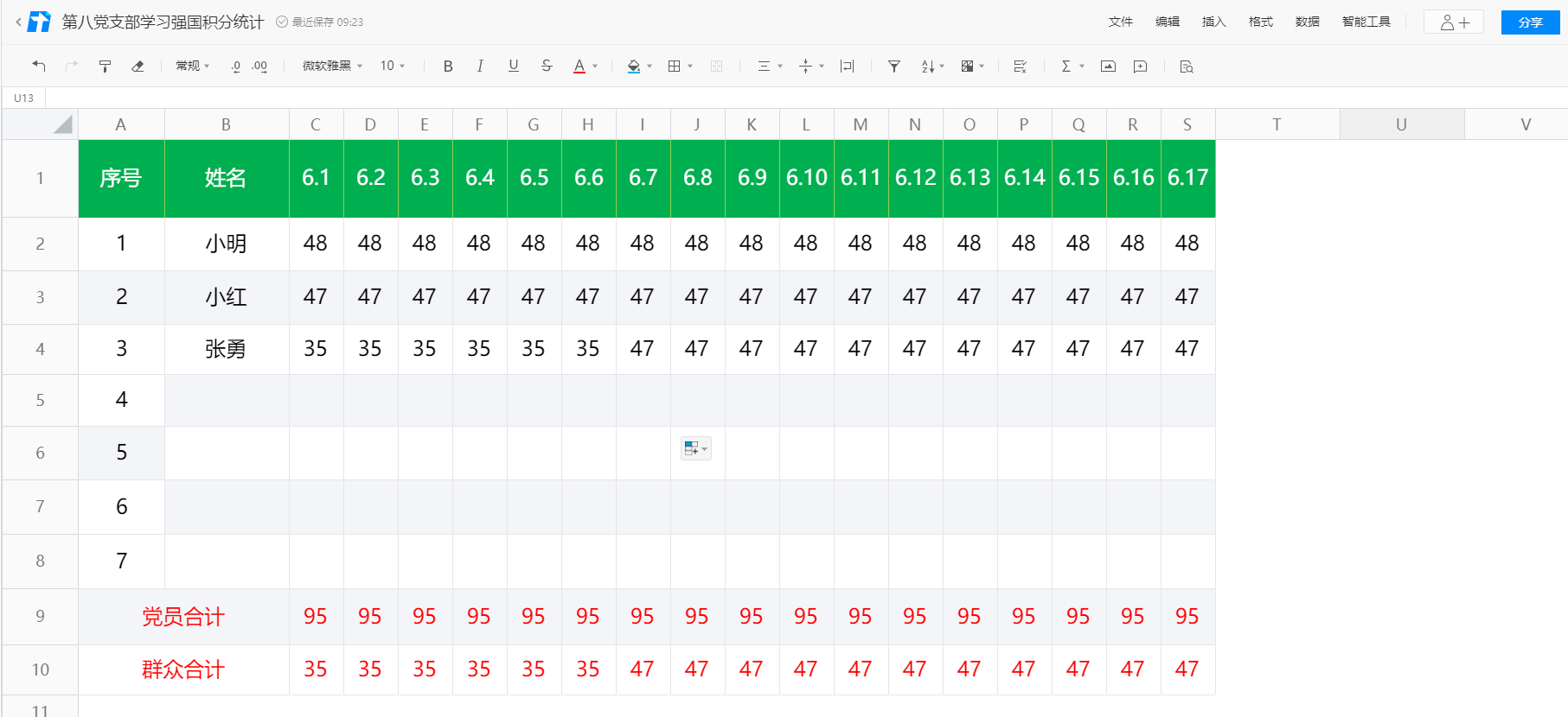 运营分公司第八党支部通过党务创新工作方法,率先打破传统报分统计方式,使用在线文档实现多人协作在线编辑,形式涵盖Word、Excel和PPT文档等,手机端和PC端均可操作,且不限时间和地点,实现轻松编辑、云端实时保存。同时,文档发起者可通过预先设置好的公式对统计结果一目了然,定期对其进行导出备案。以效能革命为抓手,提高办公乃至生产效能,不仅节省了层层统计报送环节(班组、车间、部门、党支部及党总支),同时还减少了在各层级统计过程中重复和错误的发生。方法可行后迅速于第九、十党支部推广施行,并赢得一致好评。