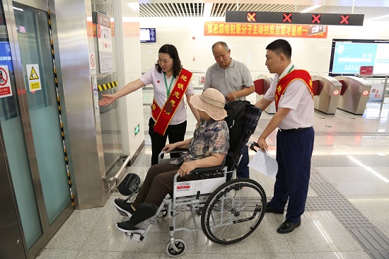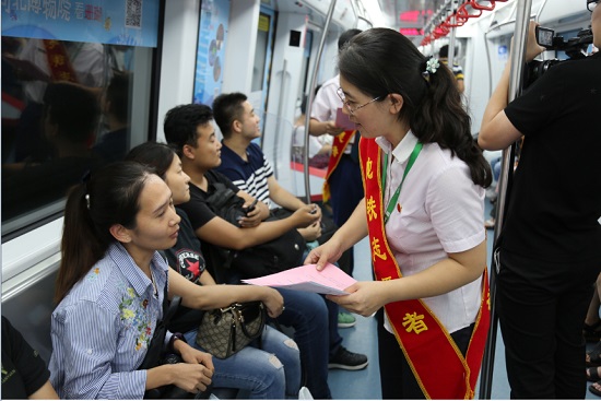 7月13日下午,25名党员志愿者来到留村站、谈固站、北宋站、新百广场站、北国商城站五座客流密度较大的地铁车站进行文明乘车宣传,倡导乘客与工作人员共同打造文明和谐的出行环境。志愿者们身着工装,佩戴印有地铁志愿者字样的红色绶带,分别来到车站站台、站厅及出入口,给乘客宣讲石家庄文明十条及如何做到安全文明乘车;询问乘客对地铁运营服务的意见或建议;引导携带大件行李或和老幼病残等不方便的乘客乘坐垂直电梯;在扶梯口指引乘客扶好站好、紧握扶手;与站务人员一同接车,引导乘客按地面指示排队候车、先下后上注意脚下安全等等,用言语和行动劝导市民文明乘车。亲和耐心的党员们用实际行动提升了石家庄地铁服务品质。