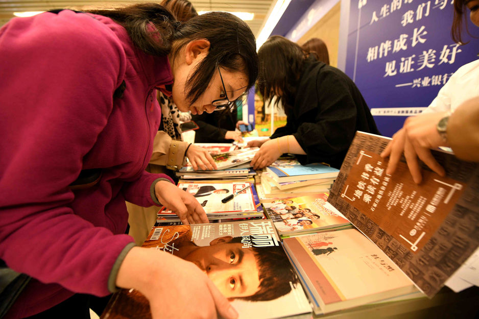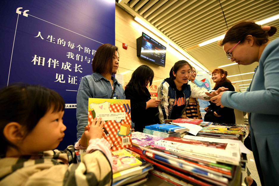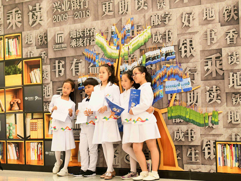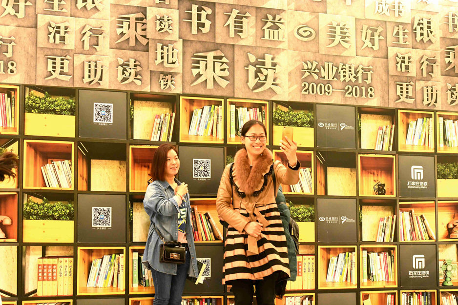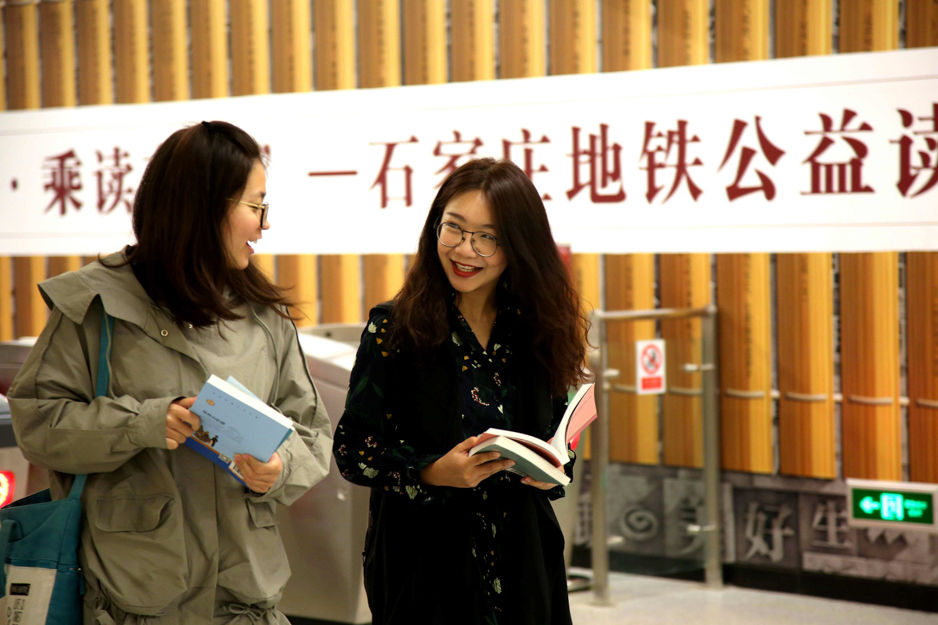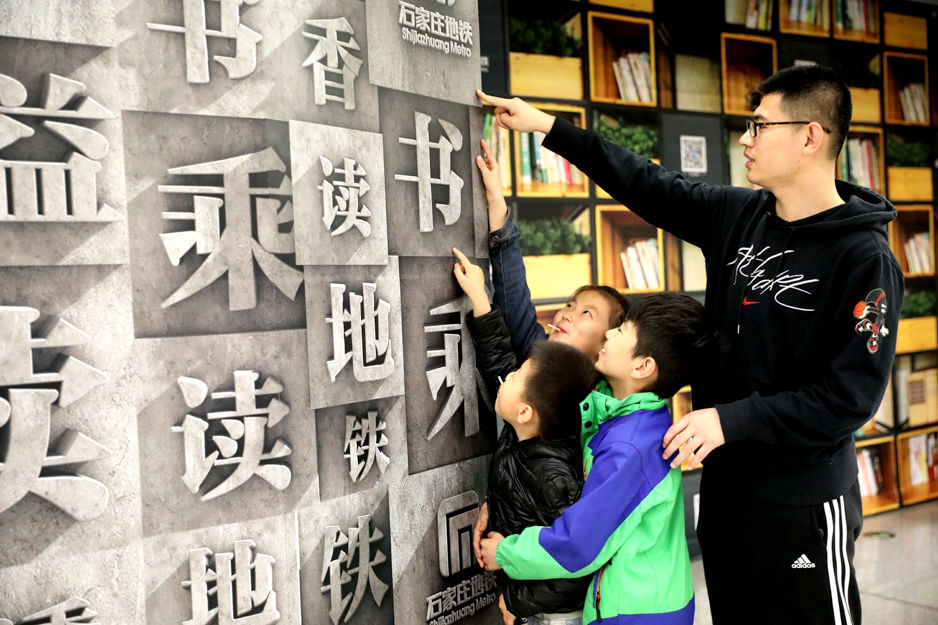 石家庄地铁博物院站内的借阅处吸引了许多市民。