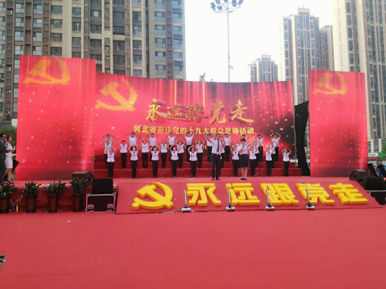 《永远跟党走》——河北省迎庆党的十九大群众歌咏活动是根据全省“突出迎接宣传贯彻党的十九大这条主线,广泛开展群众性主题宣传教育活动”及“群众参与,热在基层”等相关要求而举办的,本次活动计划将走入全省十三市一区(包括辛集、定州和雄安新区)进行14场展演,给普普通通的老百姓搭建演唱的舞台。目的就是为了迎接中国共产党第十九次全国代表大会的召开,生动反映党的十八大以来我省建设经济强省、美丽河北的成就,引导广大人民群众抒发热爱祖国、热爱中国共产党、热爱社会主义以及追求美好生活的真挚情感。作为首场展演,今天来自社会各界的群众献上对党的赞歌,表达对党的热爱!