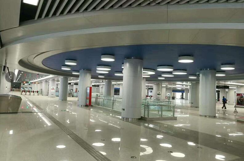 “这是1、2号线的换乘车站,石家庄地铁线网的重要功能节点,这里又位于省会重要的商业中心,因此在装修设计中我们增加了其空间高度,一般车站层高也就3米多,而这个车站层高平均4米,最高处为5米,给人一种宽敞明亮的感觉。在颜色上吊顶中有白色和红色,体现现代城市的特色。”王琦表示,这个车站位于中山路与建设大街交叉口处,该站将集合商业、过街、连通地下商业等功能,并与目前在建的地铁2号线换乘,整体设计风格简洁、明快,突出交通空间的快速、高效。为了最大限度地方便乘客出入,北国商城站设计有10个出入口(1个为预留,2个为2号线在建),是目前在建车站中出入口最多的站点。