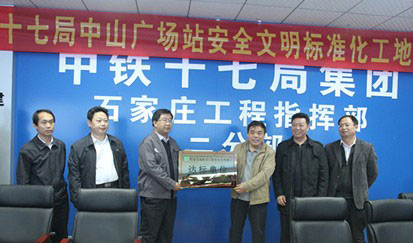 10月30日,市轨道公司总经理容建华带队,组织公司安质部、工程部、企管部和党群部等相关部门对市轨道交通1号线一期工程解放广场站、中山广场站进行了安全文明标准化工地建设的验收。通过验收,市轨道公司授予解放广场站“安全文明施工示范工地”、中山广场站“安全文明标施工达标工地”,同时要求1号线各标段相关管理人员进行观摩学习,并于11月7日向两家单位进行授牌。